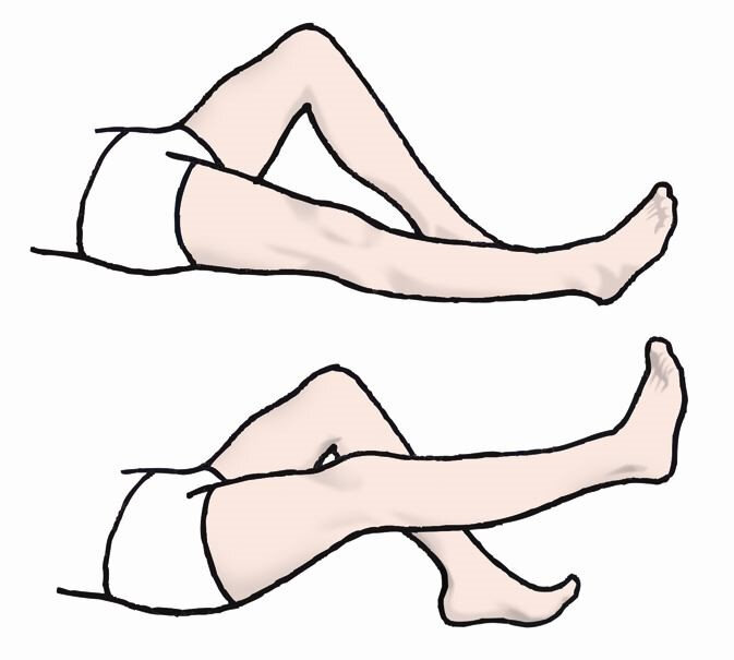 3. Levantar a perna: levante a perna esticada alguns centímetros. Segure por 10 segundos. Abaixe lentamente. Repita 10 vezes.